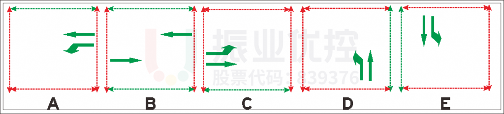 當(dāng)監(jiān)測(cè)到左轉(zhuǎn)車(chē)流排隊(duì)超過(guò)最低限值,同時(shí)直行車(chē)道車(chē)輛數(shù)小于最低限值時(shí)候,可變信息板將轉(zhuǎn)換為左轉(zhuǎn)信息,此時(shí)可變車(chē)道功能轉(zhuǎn)換為左轉(zhuǎn)車(chē)道;同理,當(dāng)直行車(chē)輛已超過(guò)最低限排隊(duì)車(chē)輛數(shù),或者左轉(zhuǎn)車(chē)輛排隊(duì)等待數(shù)小于設(shè)定最大限值,此時(shí)可變信息板將轉(zhuǎn)換為直行信息,可變車(chē)道功能轉(zhuǎn)換為直行車(chē)道。