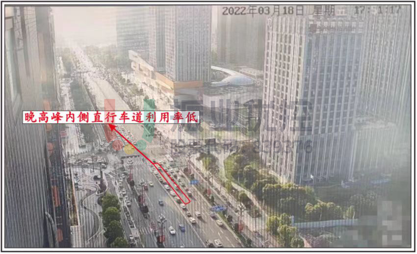 此外,晚高峰時(shí)段東進(jìn)口由于展寬影響,內(nèi)側(cè)直行車(chē)道利用率較低。