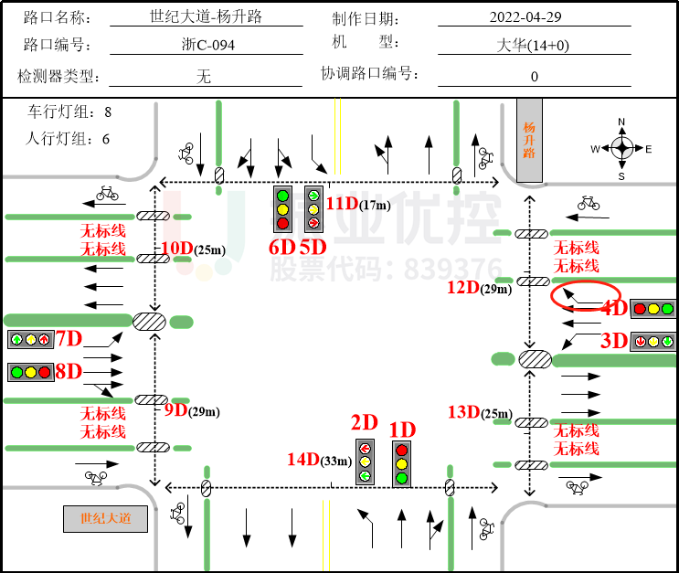 為保證市區(qū)交通效率,龍港市預(yù)設(shè)計環(huán)城綠波帶,如下圖所示。世紀(jì)大道為環(huán)城綠波帶的一部分,與彩虹大道交匯于世紀(jì)大道-彩虹大道路口,因而搭接彩虹大道出發(fā)右轉(zhuǎn)進(jìn)入世紀(jì)大道時運(yùn)行的相位為D相位。D相位為彩虹大道路口北進(jìn)口左轉(zhuǎn),為彩虹大道綠波協(xié)調(diào)相位,車輛經(jīng)此進(jìn)行左轉(zhuǎn)/右轉(zhuǎn)以匯入世紀(jì)大道。