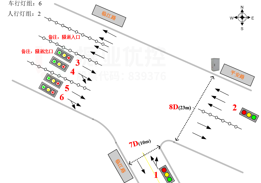 東進口方向人行橫道信號燈遲啟動3s,保障西進口尾車清空,避免直行機動車與行人過街沖突,提升路口通行安全。