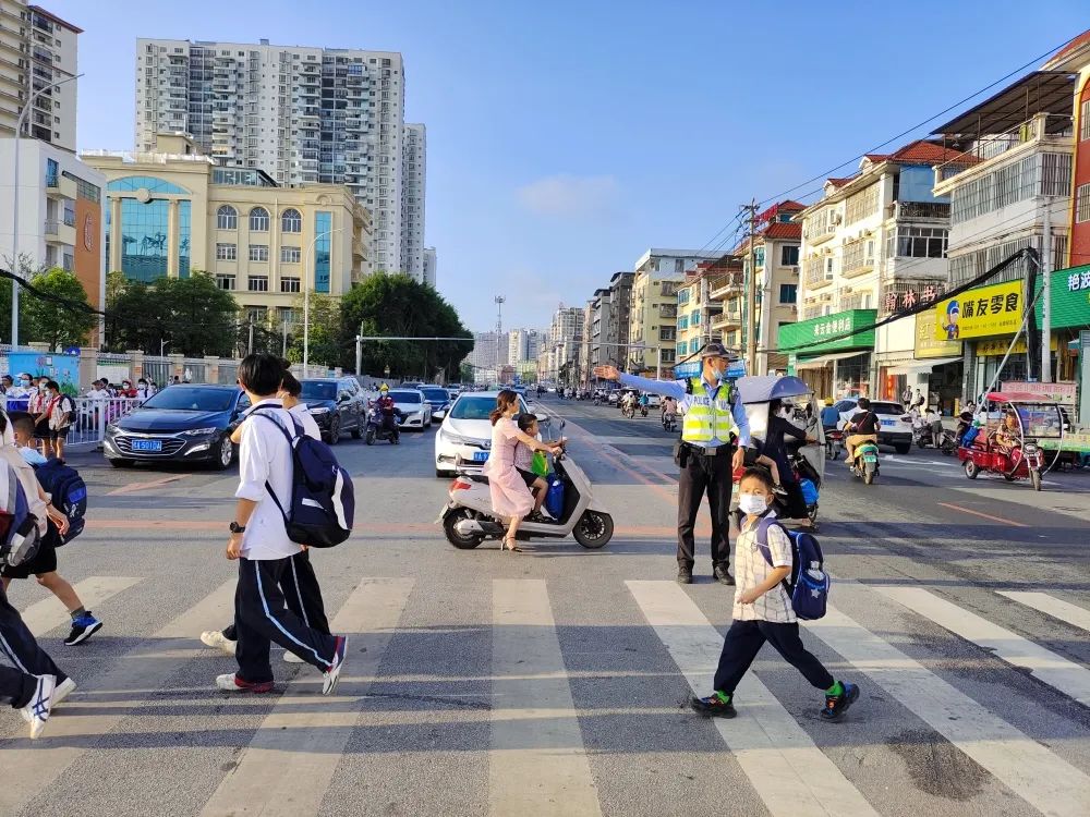 開學(xué)季期間,南寧交警根據(jù)各轄區(qū)中學(xué)校門前道路交通情況,合理安排警力,加強(qiáng)對位于主干道路邊、交通流量大、接送學(xué)生車輛多、容易造成交通擁堵的中學(xué),在學(xué)生上、下學(xué)交通高峰時段和重點(diǎn)路段加大執(zhí)勤力度,對接送學(xué)生家長及過往車輛進(jìn)行疏導(dǎo),有效確保校園周邊道路交通安全有序。