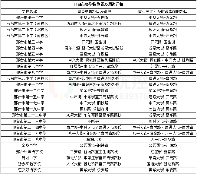 - 邢臺市學校周邊易堵路段: