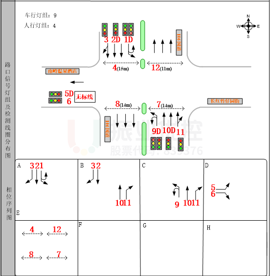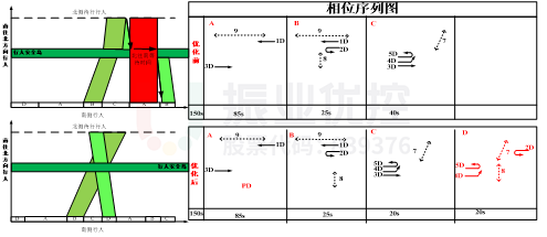 本次優(yōu)化主要是解決東進(jìn)口北往南行人過街不連續(xù),導(dǎo)致等待時(shí)間長的問題。交通工程師根據(jù)現(xiàn)場采集到的路口信息,在保證原有路口機(jī)動車通行效率不下降的情況下,設(shè)置行人過街雙向協(xié)調(diào)的控制方式。