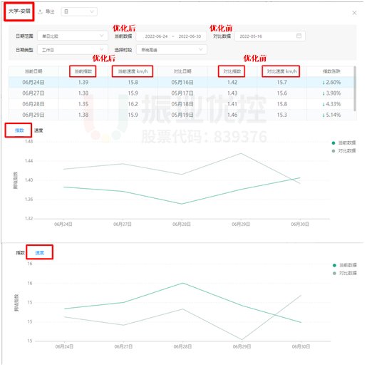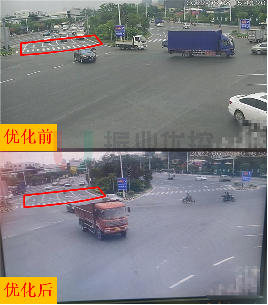 優(yōu)化后,晚高峰東進口出城及早晚高峰金鳳西路進城車輛的排隊長度減少,左轉(zhuǎn)車道飽和度下降40%,路口通行效率明顯提升。路口早晚高峰時段整體擁堵指數(shù)下降4.01%,通行速度提升3%。