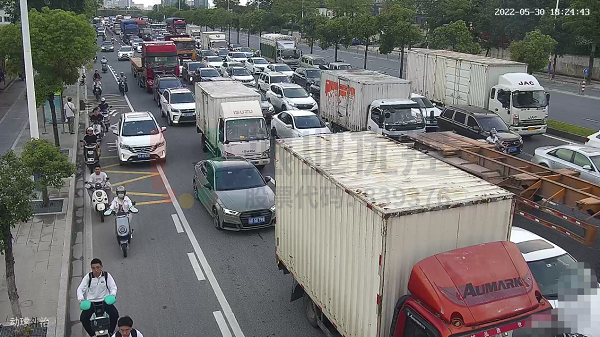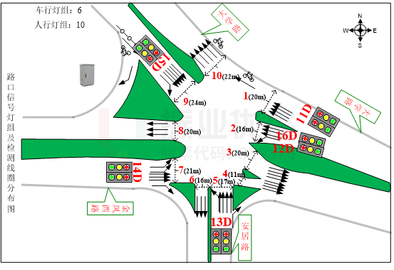 該路口周邊分布產(chǎn)業(yè)園、學(xué)校等多個交通吸引點,較多大型貨車、公交車、非機動車途徑,全天東西向車流均較大。