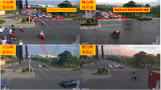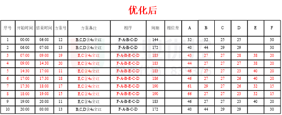 綜合路口全時段各進口流量情況,精細(xì)化路口早、平、晚及夜間時段方案,提高路口各進口通行效率。