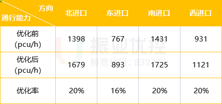 高峰時(shí)段,交叉口各方向通行車流量得到有效提升,具體情況如下表所示。