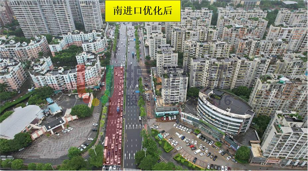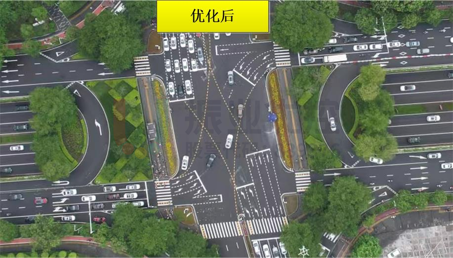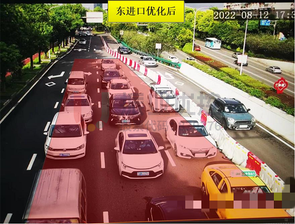 實(shí)施優(yōu)化方案后,該交叉口路況得到明顯改善,各方向的通行效率顯著提升;南向北長排隊(duì)現(xiàn)象得到有效緩解。