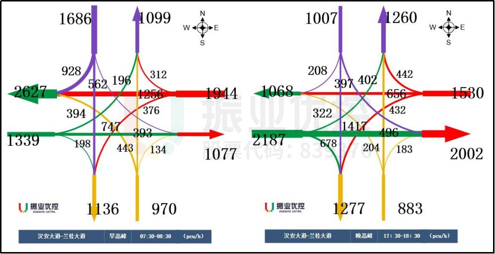 因西進(jìn)口70%交通流通過蘭桂大道及下游棲霞路轉(zhuǎn)換,進(jìn)入周邊小區(qū)及商圈消散,通過深挖信號配時(shí)、調(diào)整相位相序、設(shè)計(jì)雙向綠波協(xié)調(diào),做到寸土必?fù)?、分秒必爭,提高各路段通行效率?/p>