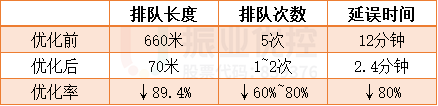 優(yōu)化后,消除了右轉(zhuǎn)車與非機(jī)動(dòng)車的影響,主路通行更加順暢;車輛排隊(duì)等待次數(shù)和延誤時(shí)間明顯減少,優(yōu)化效果明顯。
