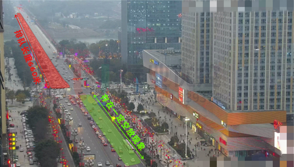 主要擁堵問題體現(xiàn)為晚高峰期間大量車流由經(jīng)開區(qū)、高速路口經(jīng)新壩大橋短時(shí)間集中至該交叉口西進(jìn)口,最長排隊(duì)長度超660米,平均排隊(duì)次數(shù)5-6次,平均延誤時(shí)間超過30分鐘。經(jīng)調(diào)研分析,導(dǎo)致?lián)矶掳l(fā)生的原因主要為如下三方面: