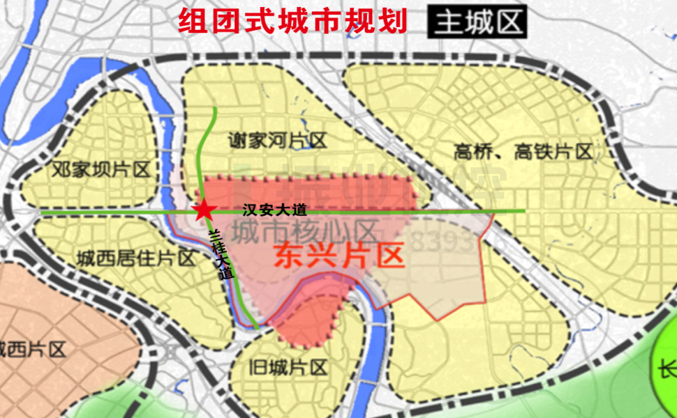 漢安大道與蘭桂大道交叉口連接的東興片區(qū)、謝家河片區(qū)、鄧家壩片區(qū)、經(jīng)開區(qū)、高新片區(qū)等各片區(qū)用地功能單一,導(dǎo)致職住分離片區(qū)間潮汐交通明顯。