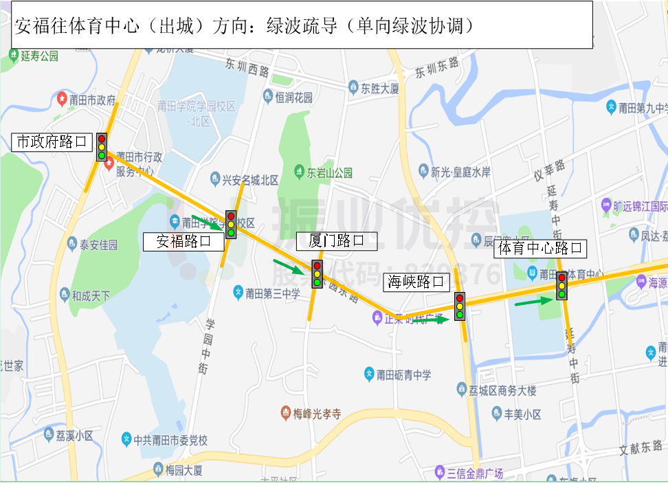 (3)荔城大道路段出城方向(臺(tái)酒往檢察院)實(shí)施綠波協(xié)調(diào),優(yōu)先出城方向車輛。