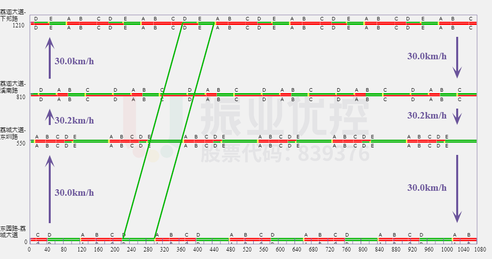 (1)晚高峰運(yùn)行綠波方案,確保檢察院路口、市政府路口、溪南路口、下鄭路口形成綠波聯(lián)動(dòng),減少停車延誤。