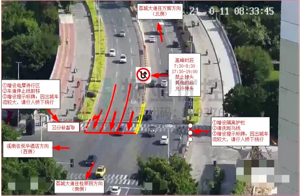 溪南路口北進(jìn)口(下鄭往檢察院方向)實(shí)行分時(shí)段掉頭。早、晚高峰時(shí)段實(shí)行禁止掉頭(7:30-8:30和17:30-19:00),進(jìn)城方向的掉頭車輛直行前往市政府路口掉頭繞行;其他時(shí)段允許掉頭。