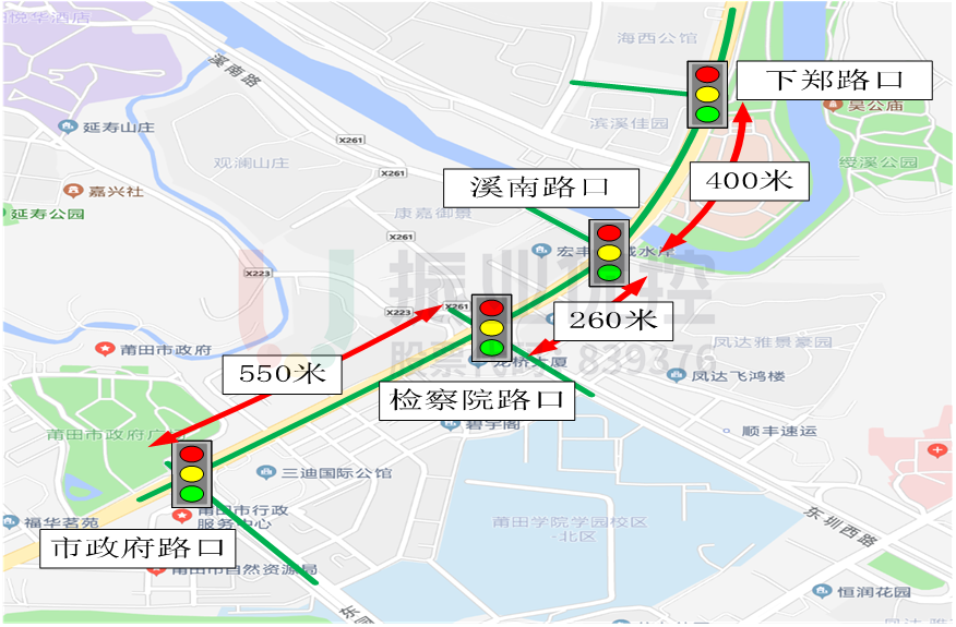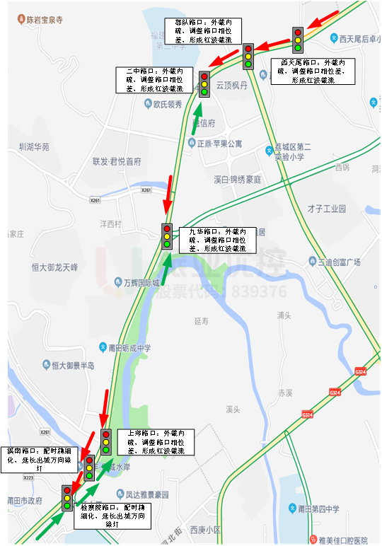 (2)荔城大道路段進(jìn)城方向(西天尾往檢察院)實(shí)施紅波截流, 減少下鄭路口往檢察院方向的車流量。