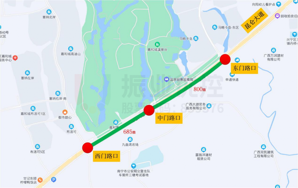 昆侖大道-嘉和城西門、中門、東門3個(gè)路口間距較短,而昆侖大道作為進(jìn)出城的重要路段,東西直行車流量大,且有貨車通行,優(yōu)化前未進(jìn)行協(xié)調(diào)控制,路段整體通行效率較低,市民出行體驗(yàn)較差。