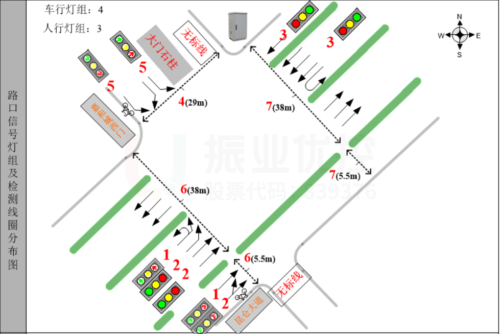 根據(jù)問(wèn)題癥結(jié),從路口基礎(chǔ)設(shè)施改造和優(yōu)化信號(hào)配時(shí)方案出發(fā),打通西門路口擁堵;再對(duì)路段車輛的通行特性進(jìn)行合理分析,設(shè)計(jì)出綠波協(xié)調(diào)方案,進(jìn)而提升路段通行效率。