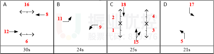 由于路口周期過短,導(dǎo)致車輛途徑該路段(雙向)的每個(gè)路口都會出現(xiàn)停車情況,東往西行程時(shí)間為6分57秒,東往西行程時(shí)間為6分30秒,駕駛員出行體驗(yàn)較差。