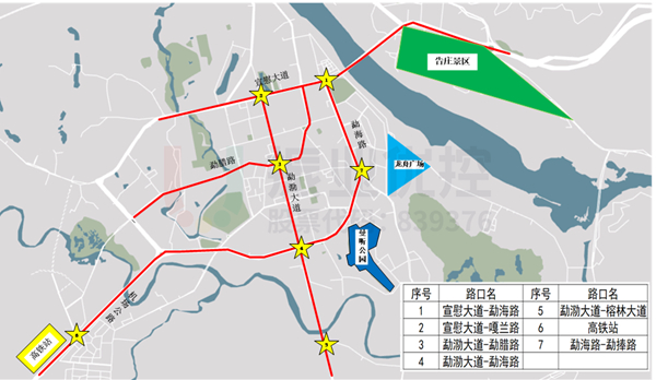 春節(jié)期間延長曼泐路、宣慰大道、景亮路等路段主流向配時(宣慰大道東段東西方向配時、景亮路南北向配時);同時根據(jù)車流量特性,13-16時,配時優(yōu)先西往東往告莊方向、16-20時優(yōu)先東往西離開告莊方向,分時段加快告莊片區(qū)核心路口車流疏散,避免區(qū)域堵塞。