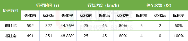 平峰時(shí)段,路段進(jìn)行雙向協(xié)調(diào),南北雙向總計(jì)停車(chē)兩次通過(guò)。
