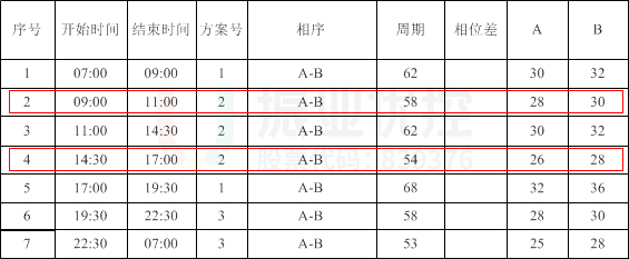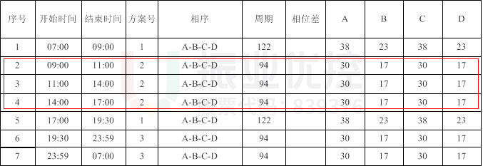 其中,長(zhǎng)城路-耀目路交叉口原信號(hào)機(jī)配時(shí)方案平峰周期為94秒;長(zhǎng)城路-學(xué)府路交叉口原信號(hào)機(jī)方案劃分了7個(gè)時(shí)段,且每個(gè)時(shí)段周期都不一樣,早平峰周期為58秒,午平峰為54秒。兩個(gè)路口早平峰周期相差36秒,午平峰周期相差40秒,周期相差較大。