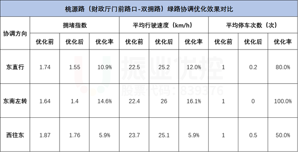 (2)設(shè)置協(xié)調(diào)方案后,工作日晚高峰該路段東往西方向平均擁堵指數(shù)由1.45下降至1.29,降低了11%;平均車速由33.5km/h增加至37.9km/h,提升了13.1%。西往東方向平均擁堵指數(shù)由1.43下降至1.15,降低了19.3%;平均車速由29.7km/h增加至36.8km/h,提升了23.9%。