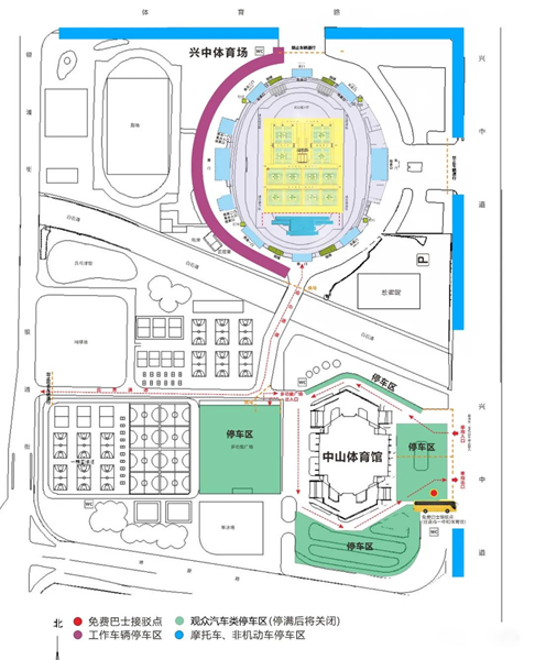 考慮到場(chǎng)館的交通特性,中山交警支隊(duì)對(duì)興中道、博愛(ài)路、銀通街、體育路等場(chǎng)館周邊道路進(jìn)行停車管制,禁停一切車輛,且活動(dòng)前兩日直至活動(dòng)結(jié)束,場(chǎng)館內(nèi)部區(qū)域的停車位除工作車輛外,禁止社會(huì)機(jī)動(dòng)車輛進(jìn)入停放。