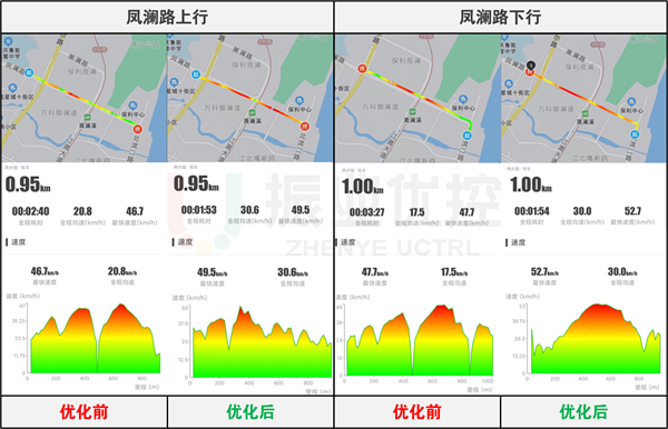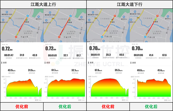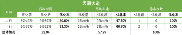 路段上行停車次數(shù)由1次變?yōu)?次,全程耗時(shí)縮短70秒;下行停車次數(shù)由2次變?yōu)?次,全程耗時(shí)縮短74秒。