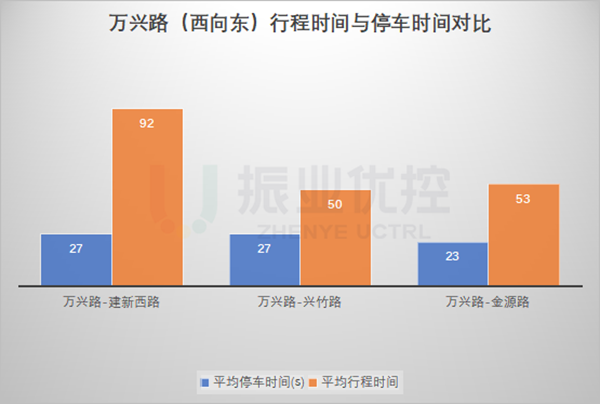 由于路段信號燈路口未進行協(xié)調控制,加上道路環(huán)境復雜,如萬興路-金源路路口西進口存在路段瓶頸(三車道變四車道)、行人橫穿馬路與非機動車隨意闖紅燈等現象頻發(fā),導致路段平均車速較慢。