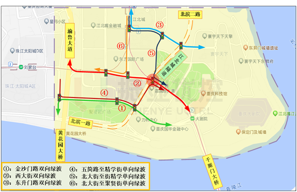 本次優(yōu)化工作綜合考慮江北城片區(qū)車(chē)流運(yùn)行特點(diǎn)、道路通行條件及信號(hào)燈控設(shè)備,采取綠波協(xié)調(diào)控制優(yōu)化手段,成功將區(qū)域短距離路口連線(xiàn)、連片,實(shí)現(xiàn)以信控協(xié)調(diào)的方式來(lái)均衡區(qū)域路網(wǎng)交通流,有效分?jǐn)傄锥曼c(diǎn)位交通壓力,提升江北城區(qū)域路網(wǎng)通行效率,讓市民朋友在愉快游玩的同時(shí),也有一次輕松、平穩(wěn)駕駛的體驗(yàn),充分展現(xiàn)重慶江北交巡警為確保轄區(qū)道路網(wǎng)運(yùn)行暢通做出的決心和努力。