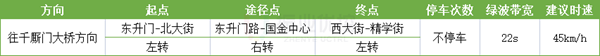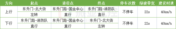 線(xiàn)路三:東升門(mén)路雙向不停車(chē),綠波帶寬22s,建議速度40km/h。