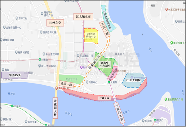 江北城片區(qū)位于重慶市江北區(qū)核心區(qū)域,東向與南岸區(qū)隔江相望,南向與渝中區(qū)為鄰,北向連接渝北區(qū),西向與五里店街道接壤。片區(qū)內(nèi)分布有金融中心、財(cái)信廣場(chǎng)、購(gòu)物中心、重慶大劇院、江北嘴江灘公園等眾多交通吸引點(diǎn),日常交通需求明顯,節(jié)假日交通擁堵現(xiàn)象尤為突出。