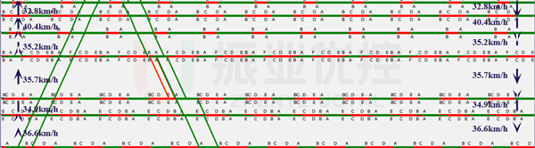 調(diào)整相位相序是綠波協(xié)調(diào)中比較常見的措施,特別是在道路條件較好、干擾較小,適合做綠波協(xié)調(diào)設(shè)計的主干道。通過減少支路綠燈空放,主流向相位搭接等方式調(diào)配綠信比和相位差,使得車輛能夠一路不停車通過各個路口,減少通行延誤。
