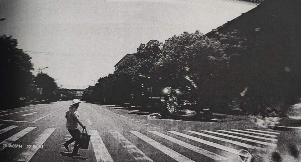 尤其值得注意的是,即使她在被撞時(shí),面部都朝向馬路對面方向,也就是說,她一直都是通過余光來對車速和距離進(jìn)行判斷的,這也大大影響了人眼通過車輛圖像大小估算速度的準(zhǔn)確度,造成了她的錯(cuò)誤判斷(如圖3、圖4)。此類事故在人車間事故中很典型,也是人因在交通事故中的具體體現(xiàn)。