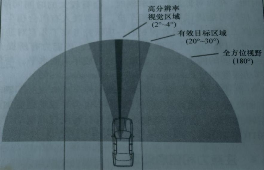 還有一個(gè)重要特點(diǎn)是有效視野。研究表明,大多數(shù)目標(biāo)是在距離視線不到15°的區(qū)域被發(fā)現(xiàn)的。任務(wù)要求越高,“視錐”或“有效視野”就越窄,駕駛?cè)税l(fā)現(xiàn)外圍目標(biāo)的可能性就越小(如圖2)。這也就是為什么在車速越高時(shí)視野越窄的原因。分心駕駛也與視覺處理能力有關(guān)。