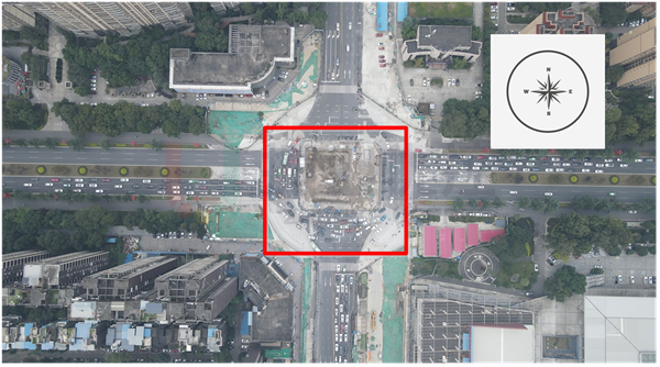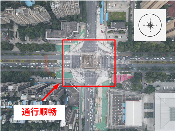 近期,因成眉市域鐵路S5線音樂(lè)廣場(chǎng)站建設(shè)需要,眉山大道與文忠街交叉口中間位置及各進(jìn)口道均存在圍蔽施工區(qū)域;交叉口也配合改造為臨時(shí)環(huán)島交叉口,并在各進(jìn)口道和島內(nèi)分別設(shè)置信號(hào)燈,對(duì)相應(yīng)的車流進(jìn)行燈控。