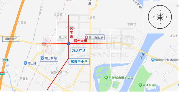眉山大道是眉山市主城區(qū)連接岷東新區(qū)的重要通道,眉州大道與文忠街交叉口位于該道路中段,為重要節(jié)點(diǎn)。交叉口周邊毗鄰機(jī)關(guān)單位、商業(yè)廣場(chǎng)及大型車流集散點(diǎn),交通業(yè)態(tài)豐富。