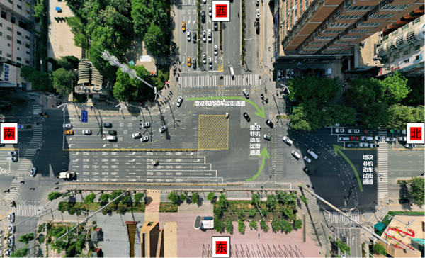 - 朱雀大街與雁南二路交叉口:重構(gòu)非機(jī)動(dòng)車(chē)過(guò)街秩序