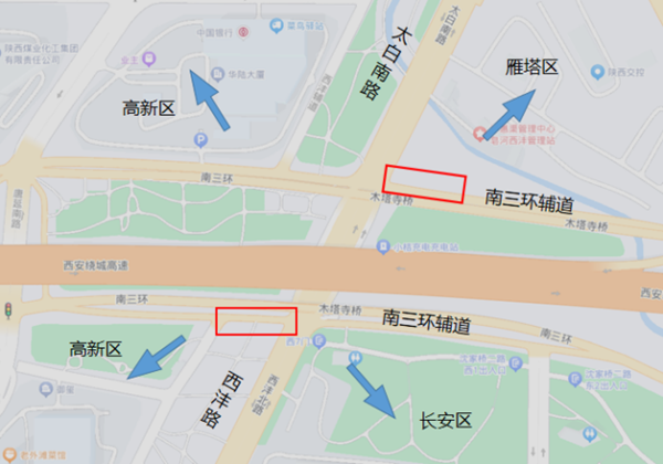 路口概況:西灃路與南三環(huán)輔道節(jié)點(diǎn)為典型的菱形立交。該處橋下交叉口作為高新區(qū)、長(zhǎng)安區(qū)、雁塔區(qū)的重要的交通轉(zhuǎn)換節(jié)點(diǎn),機(jī)動(dòng)車(chē)及非機(jī)動(dòng)車(chē)流量均十分飽和,機(jī)非干擾嚴(yán)重。