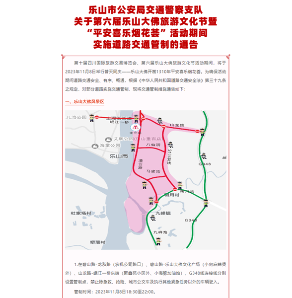 18:30至22:00,在碧山路-龍泓路、碧山路-樂山大佛文化廣場、山龍路-岷江一橋東端、G348線連接線路口分別設(shè)置管制點(diǎn)。20:30至21:30,在S104復(fù)線、明月路、九峰路分別設(shè)置管制點(diǎn)。