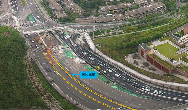 本案例通過設置潮汐車道,配套設計人行天橋、優(yōu)化相位、精細化晚高峰配時等措施,以空間換時間,有效緩解潮汐現(xiàn)象及因占道施工無法滿足通行帶來的擁堵問題,切實改善高峰期間路口整體的通行環(huán)境。