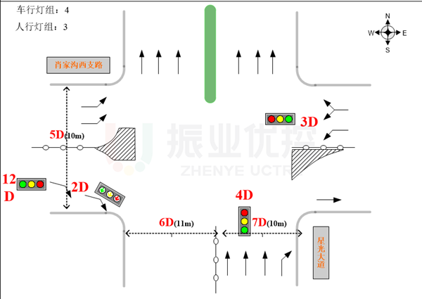 (1)設置南往北潮汐車道,緩解南進出口(星光大道)高峰期間潮汐現(xiàn)象,提高道路使用效率;
